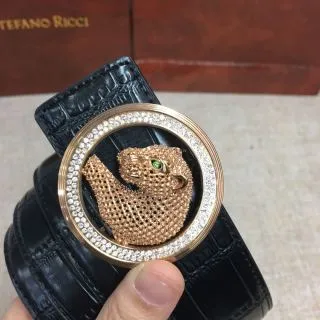 - The buckle is elaborately crafted: it showcases a detailed decorative motif (e.g., a sculpted figure) framed by embellished accents, elevating the belt’s upscale appearance.