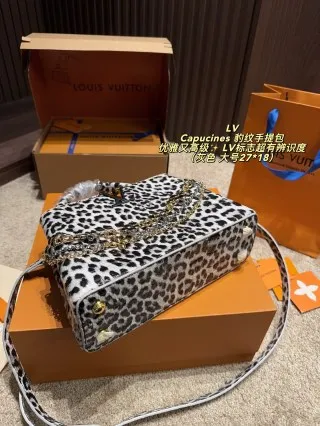 - Sizes & Design: Available in 2 sizes (27×18cm / 20×14cm), featuring a bold leopard print and a recognizable logo accent (chic, eye-catching). The design balances sophistication and bold style.