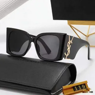 - Frame: Thick, bold rectangular shape; decorative logo/chain-style details on temples for a stylish accent