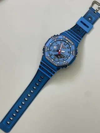 - Uniform bright blue colorway: The case and textured strap feature a cohesive all-blue finish, accented by a red analog hand and a whimsical speech bubble graphic on the dial for a fun, standout appearance.