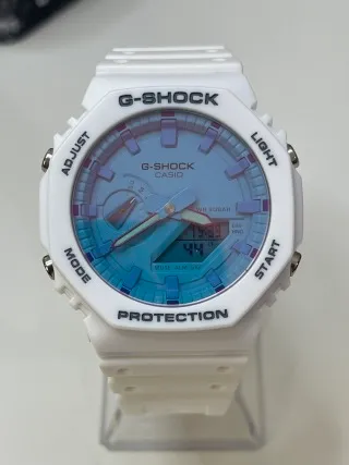 - Crisp all-white case and strap: The minimalist white base is elevated by a dial with a subtle, shifting pastel gradient (blue-to-purple iridescence), adding a playful, dynamic touch to the understated look.