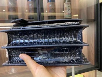 - Size & Material: Measures 22×8×16cm, made of high-quality full-grain leather with a rich crocodile embossed pattern (glossy, opulent finish). Paired with premium hardware for a polished, high-end look.