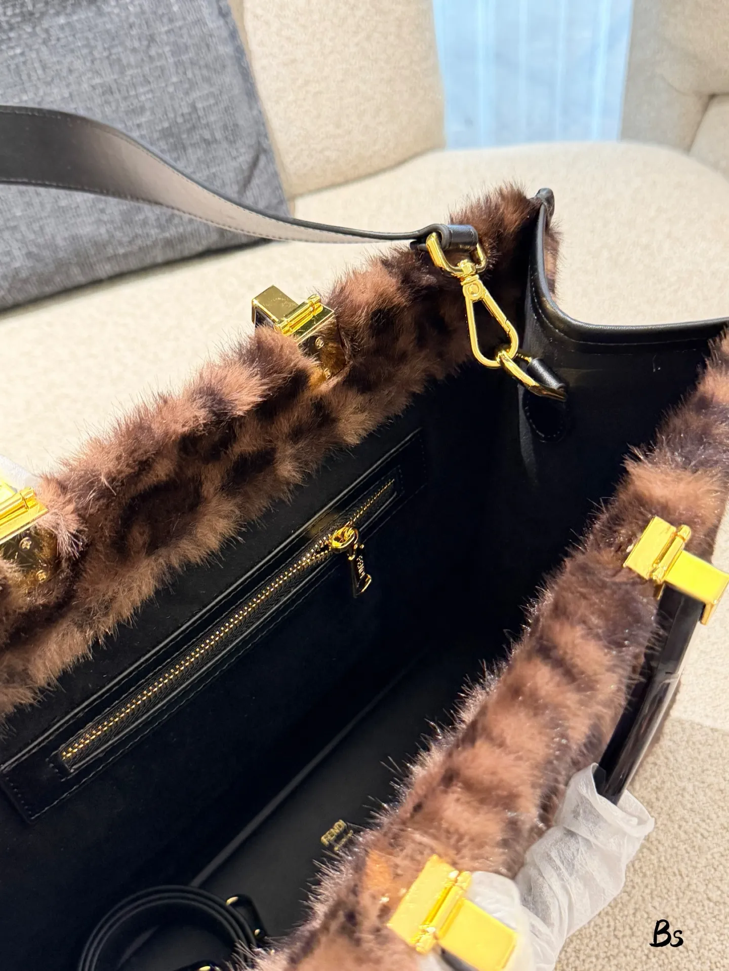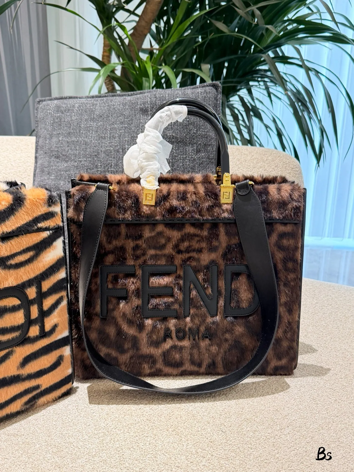 - Material & Aesthetic: Made of plush fuzzy fabric (ideal for fall) paired with sleek black leather accents, it balances cozy luxury with a striking, eye-catching tiger print. The front features embossed lettering for a polished, distinctive touch.