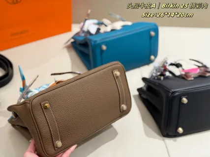 This is a popular bag (in the 25 size) with a calm, rational and high-end design. It’s not a single plain color—instead, it resembles mist winding in the morning light, paired with a touch of cool metallic texture. The soft leather texture makes this color tone both gentle and firm.