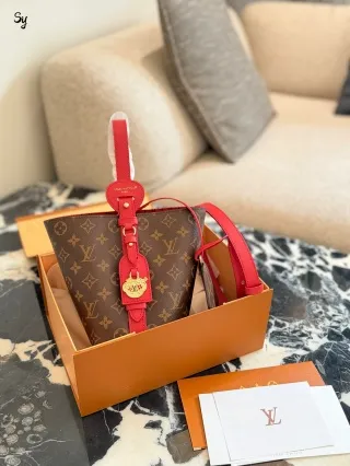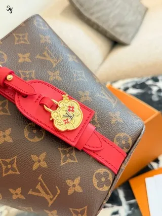 • Design & Material: Crafted from iconic vintage canvas with premium red leather accents, this bucket bag features a harmonious contrast of textures. Adorned with a golden lucky charm pendant, it exudes a strong New Year festive atmosphere. The interior is lined with red fabric, symbolizing good luck and prosperity in line with New Year traditions.