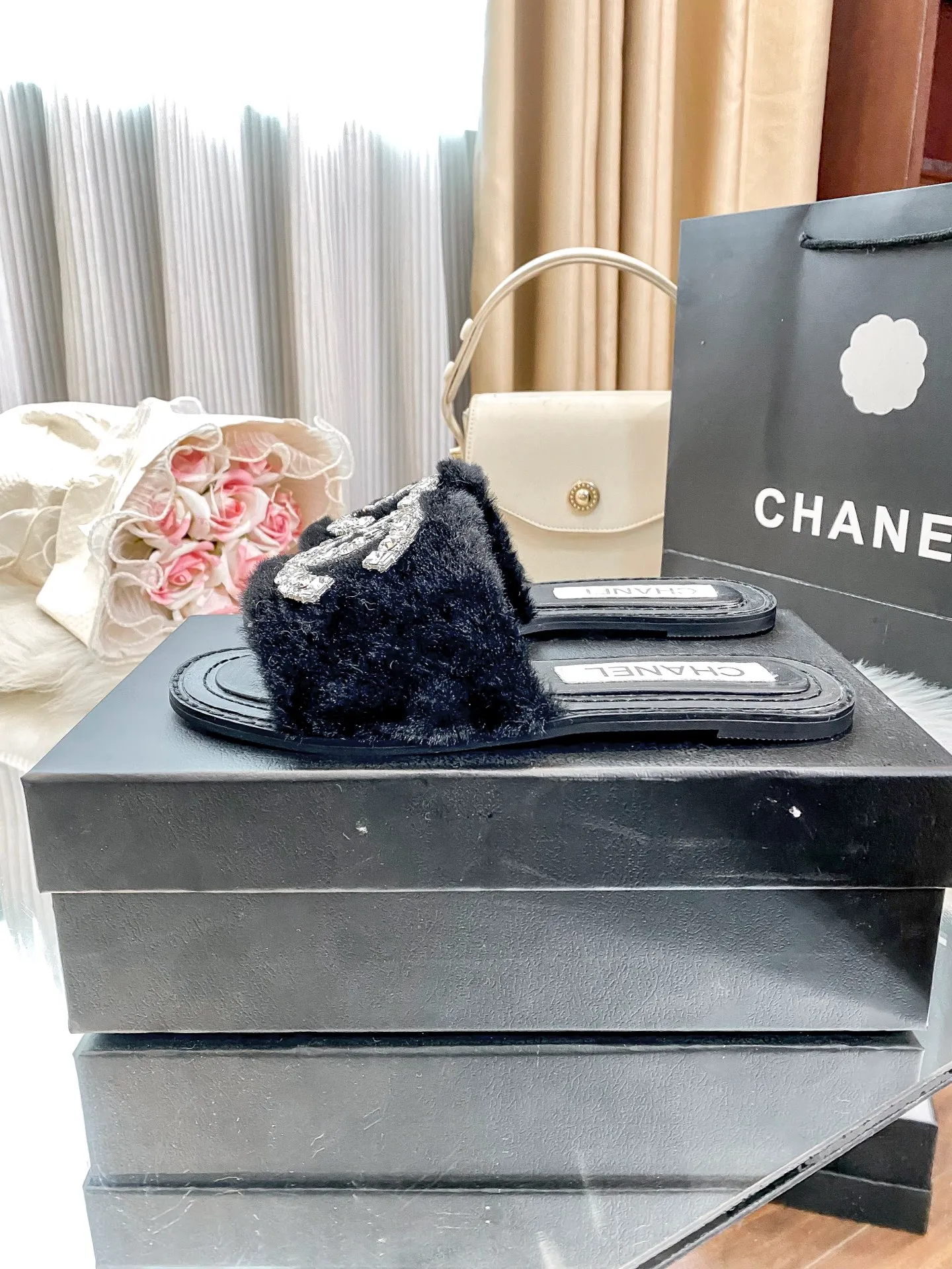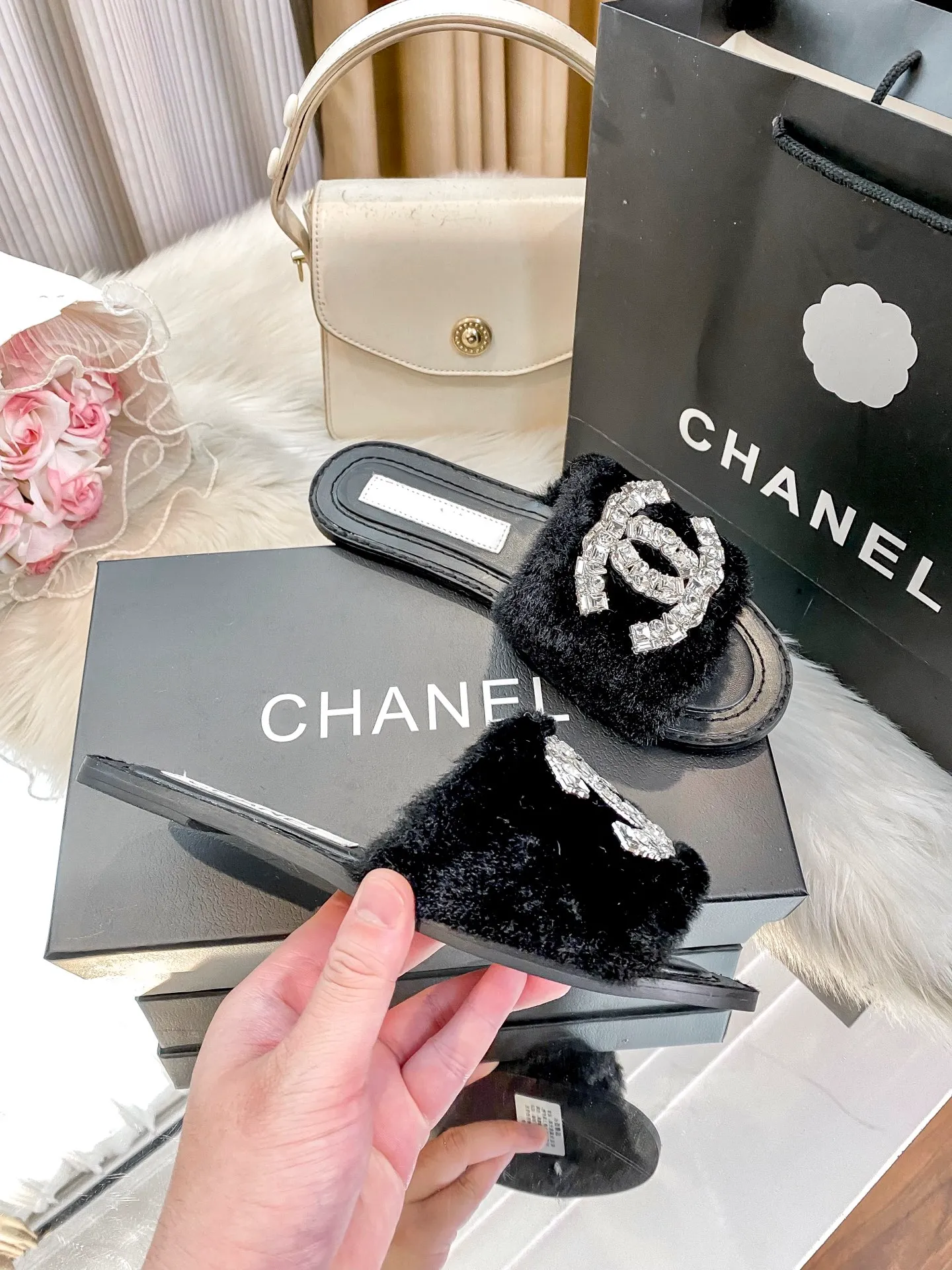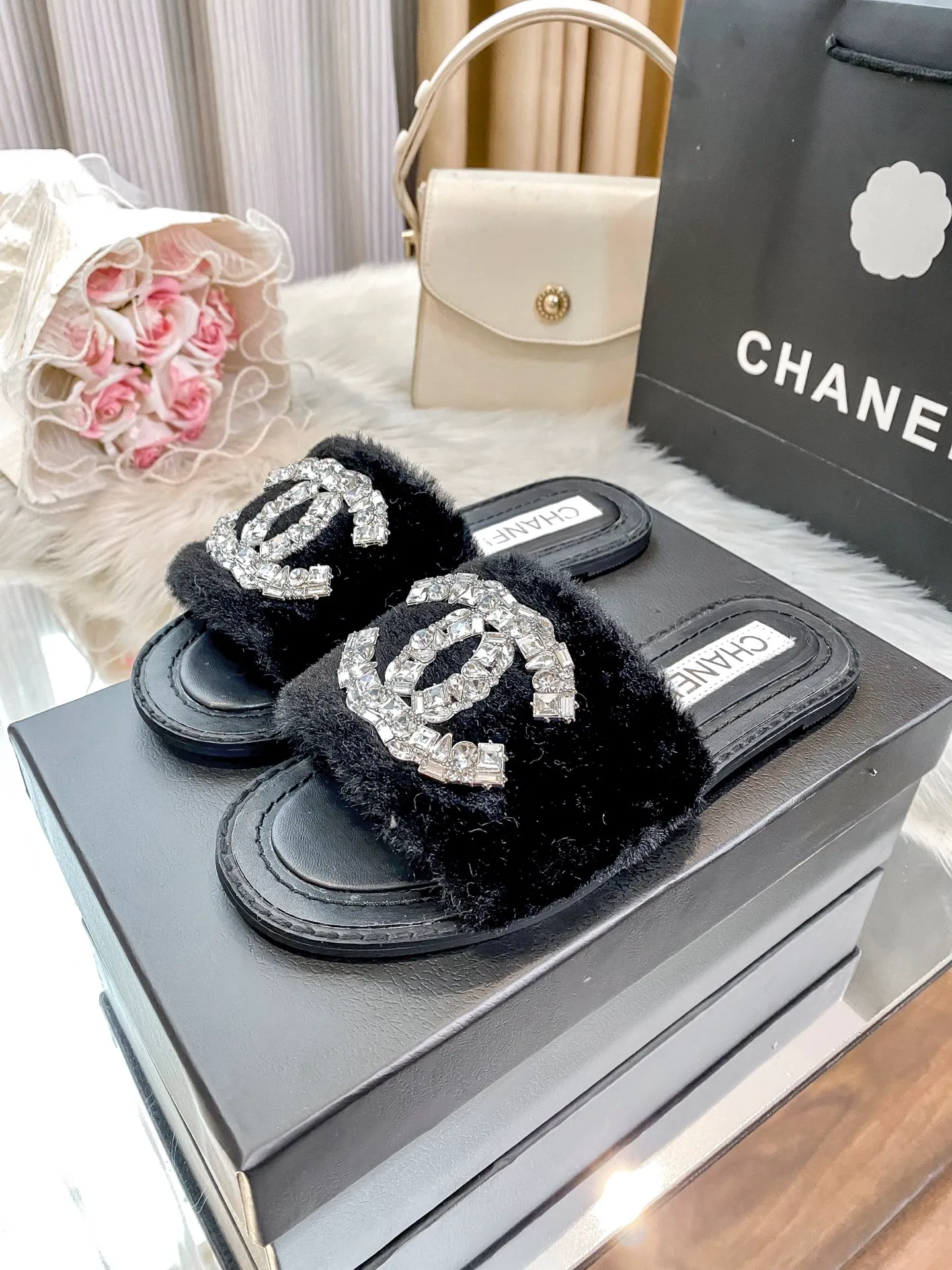 New fuzzy slippers are here 💋💋 Latest counter-style new arrival 🤗🤗 A very elegant slipper item.