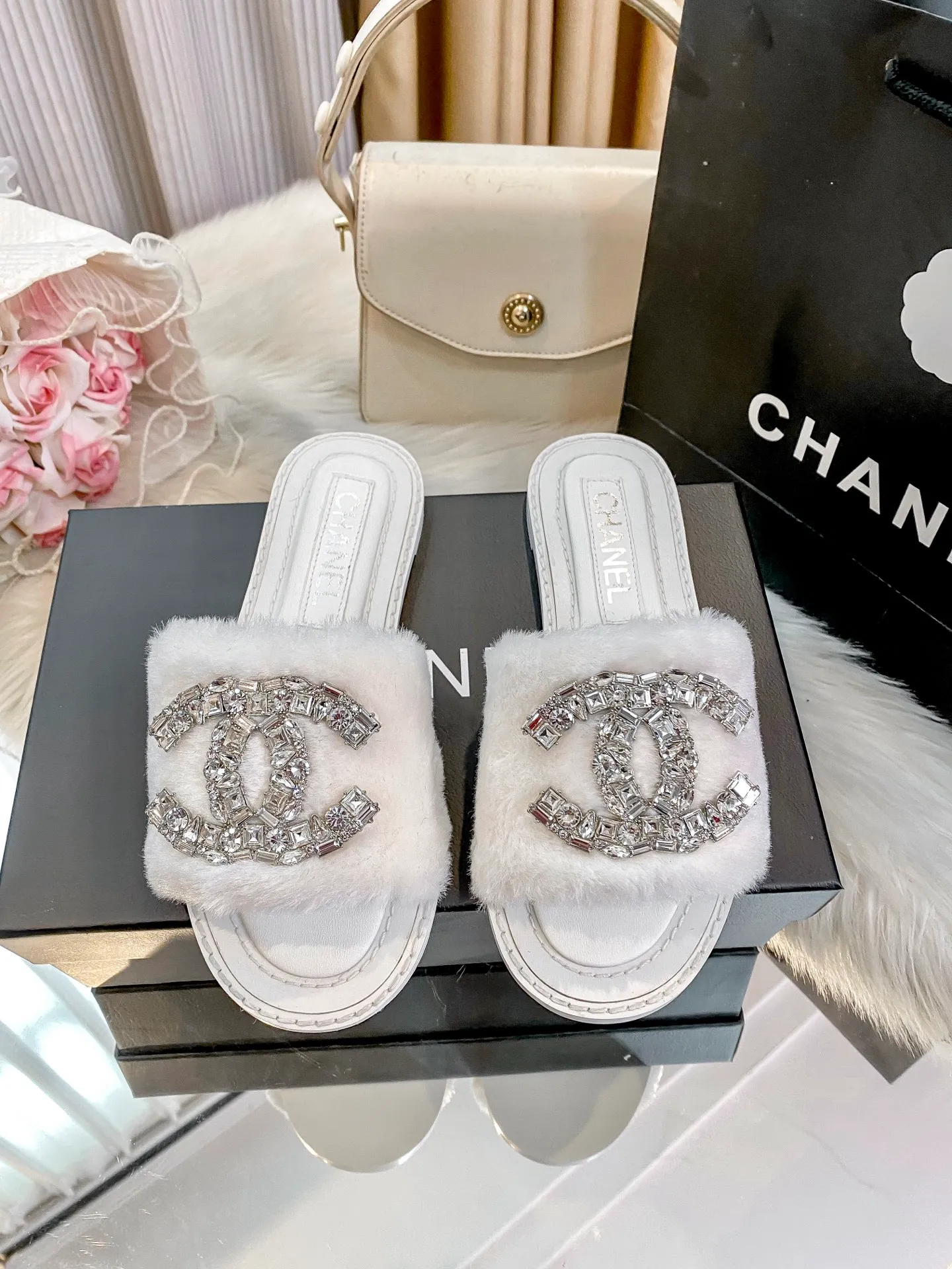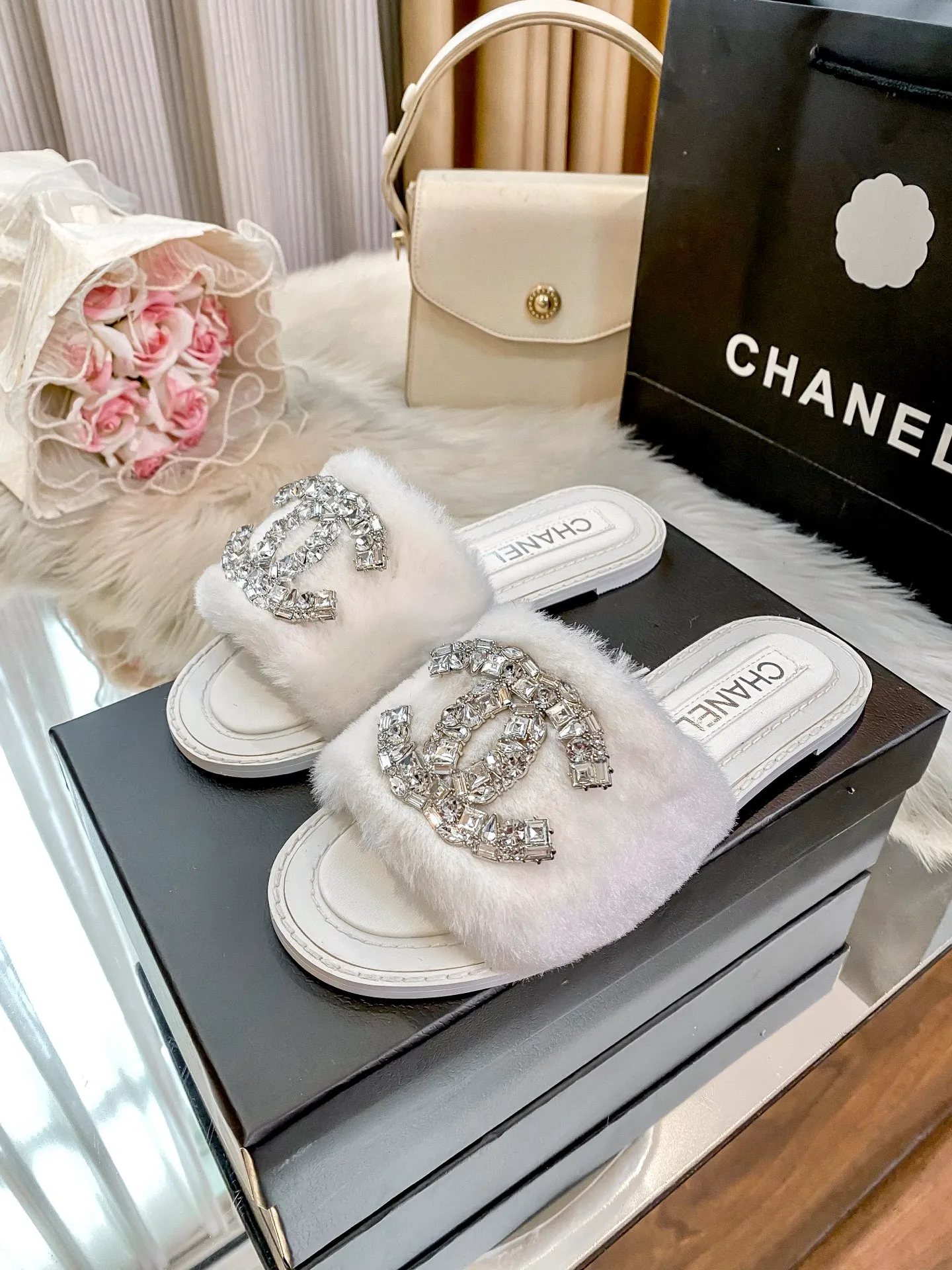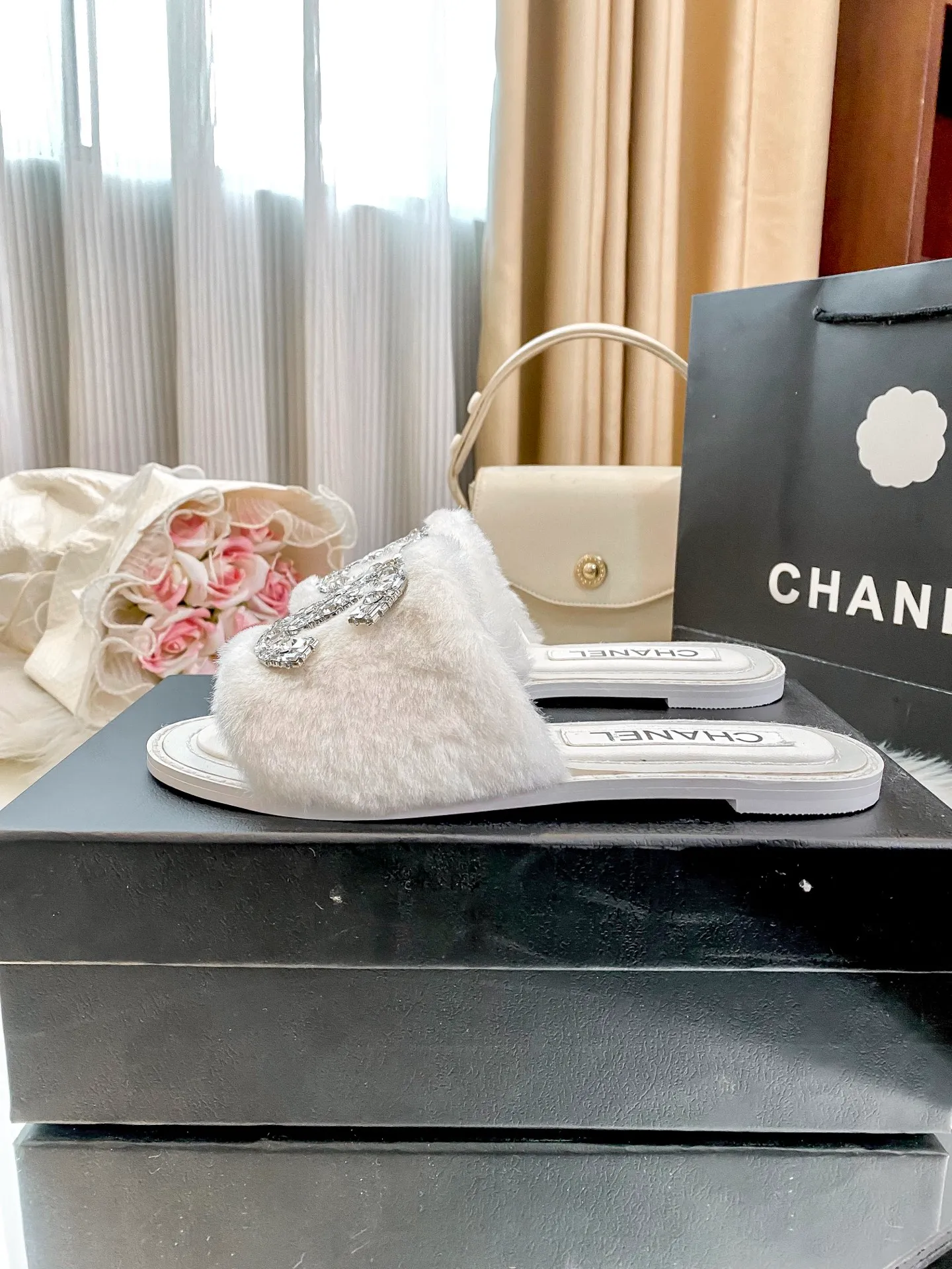 New fuzzy slippers are here 💋💋 Latest counter-style new arrival 🤗🤗 A very elegant slipper item.