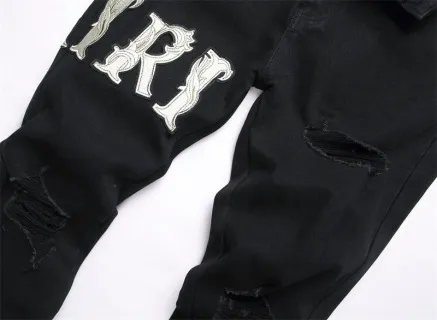 - Light-colored patch embroidery + distressed details (adds striking, high-contrast streetwear character)