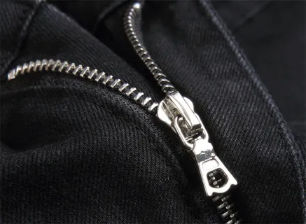 - Black denim base (sleek, easy to pair with various tops)