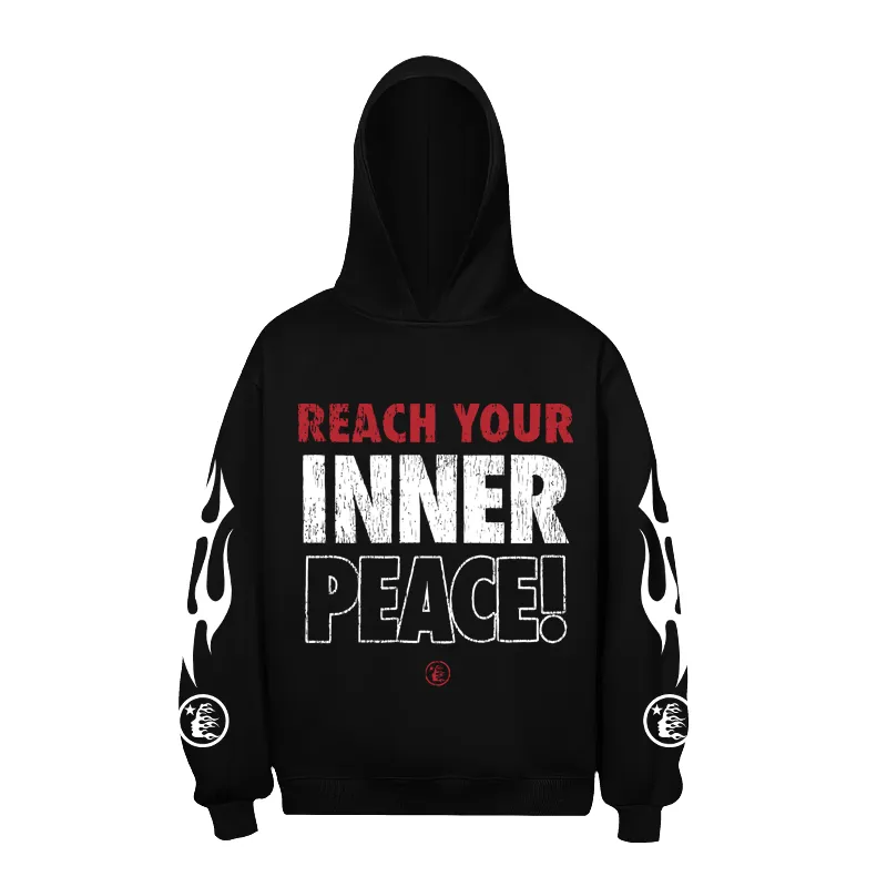 - Design & Style: The hoodie showcases bold "Inner Peace" text prints and artistic graphic elements, creating a visually striking and thought-provoking effect. The overall style is urban and expressive, ideal for making a fashion statement with a message.