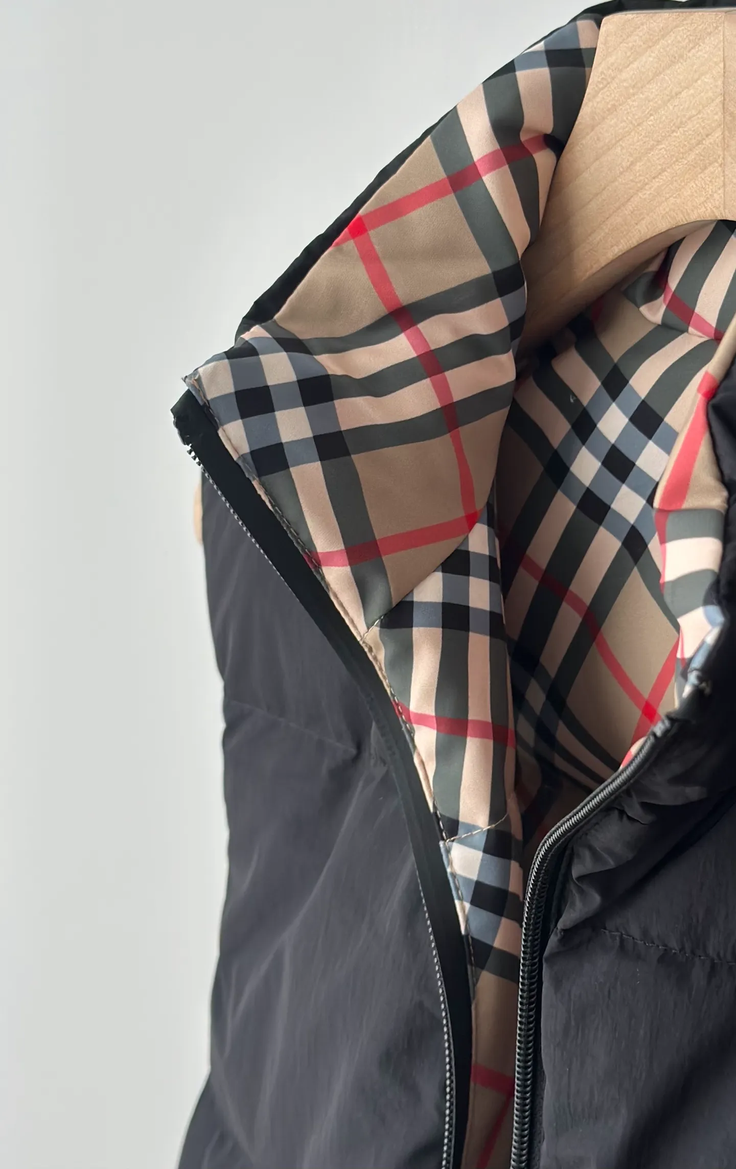• Hidden hood (tucks neatly into the collar when not in use, preserving the vest’s sleek silhouette and minimalist style)