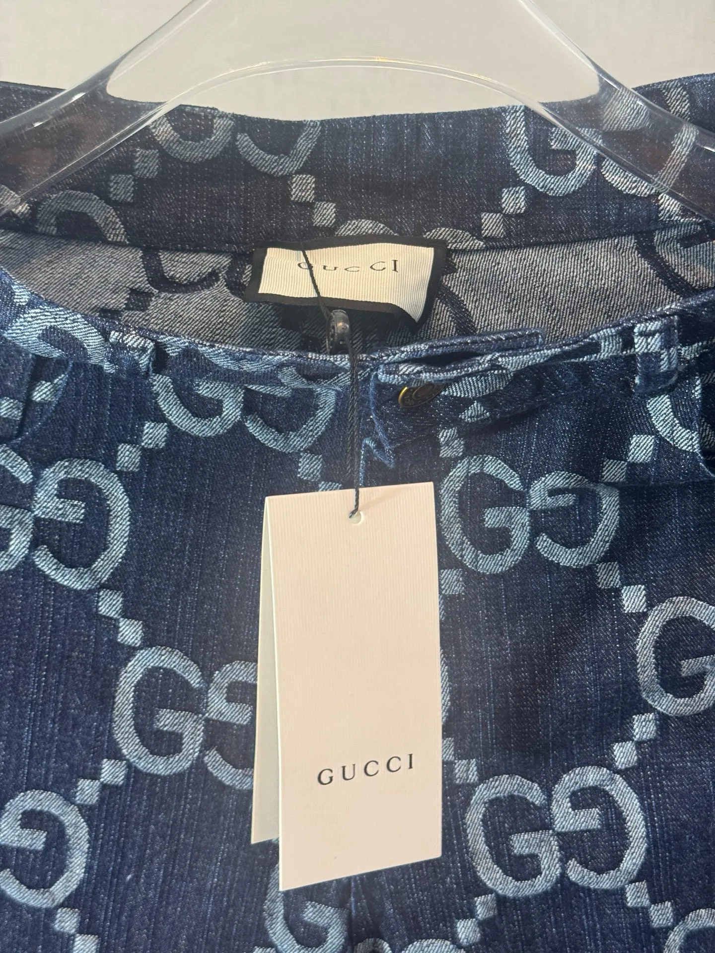 - Material: Custom all-over double-letter jacquard denim (soft texture; breathable and comfortable for all-day wear)
