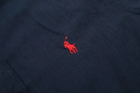- Design: Classic collar; full-button placket; small embroidered accent on the chest