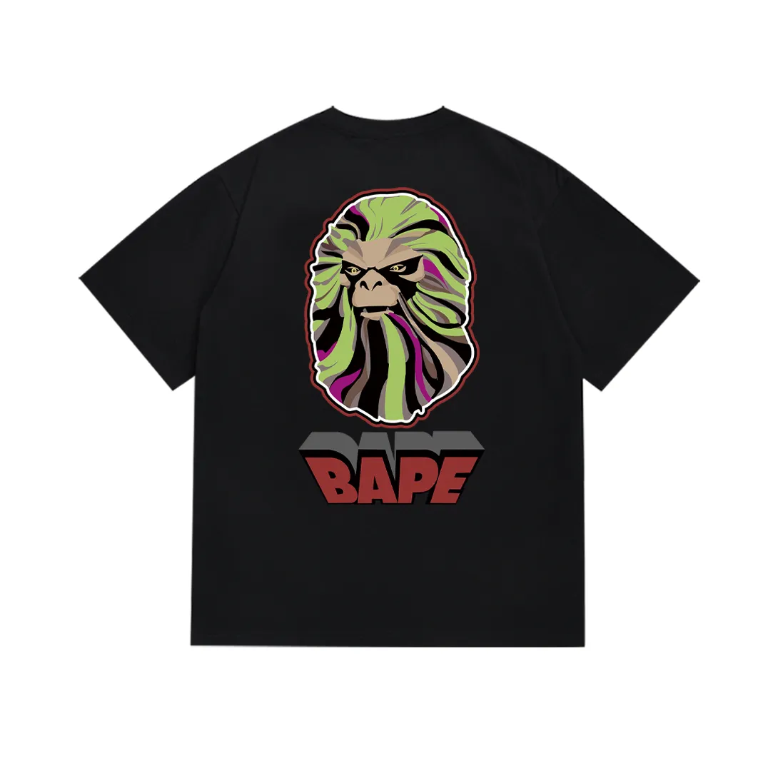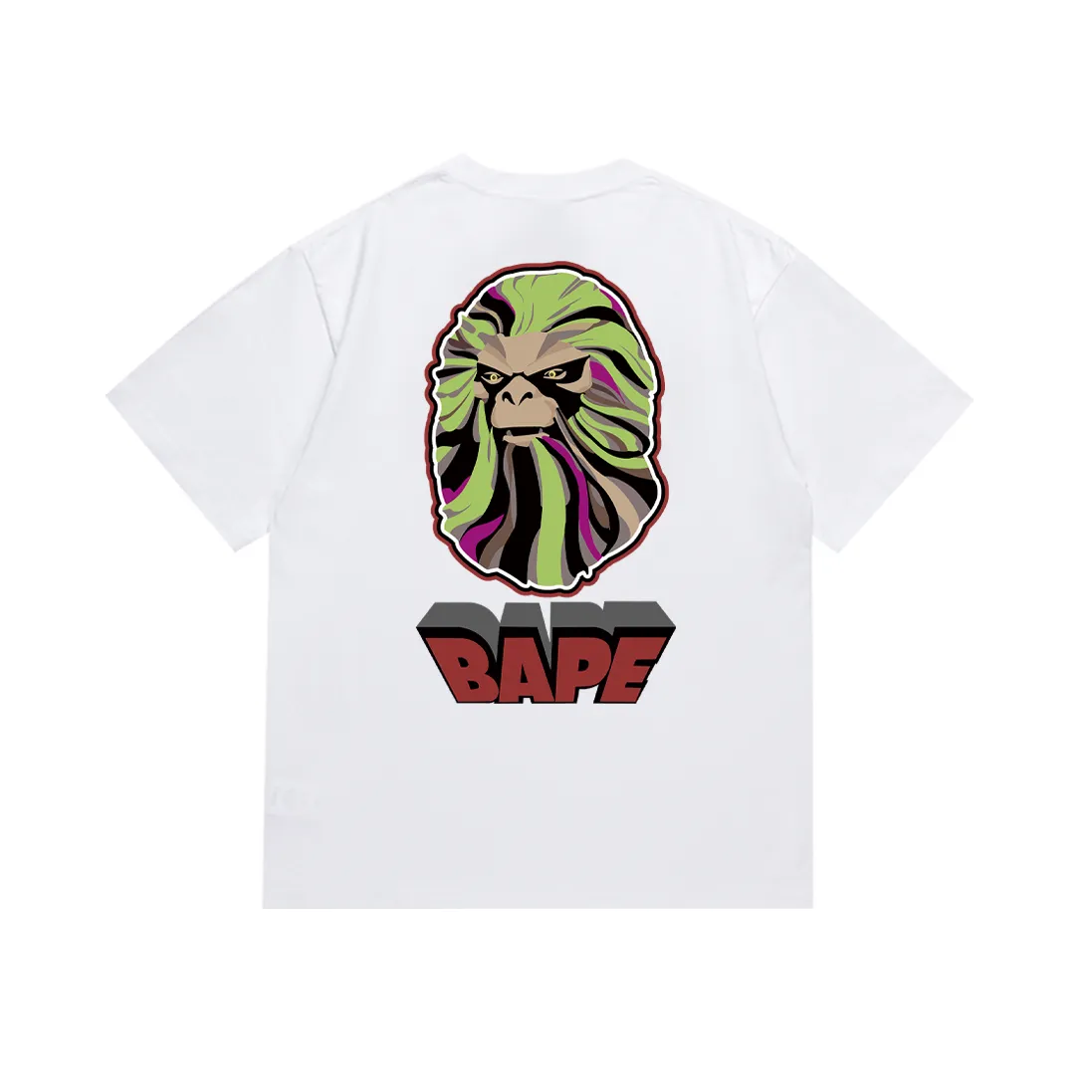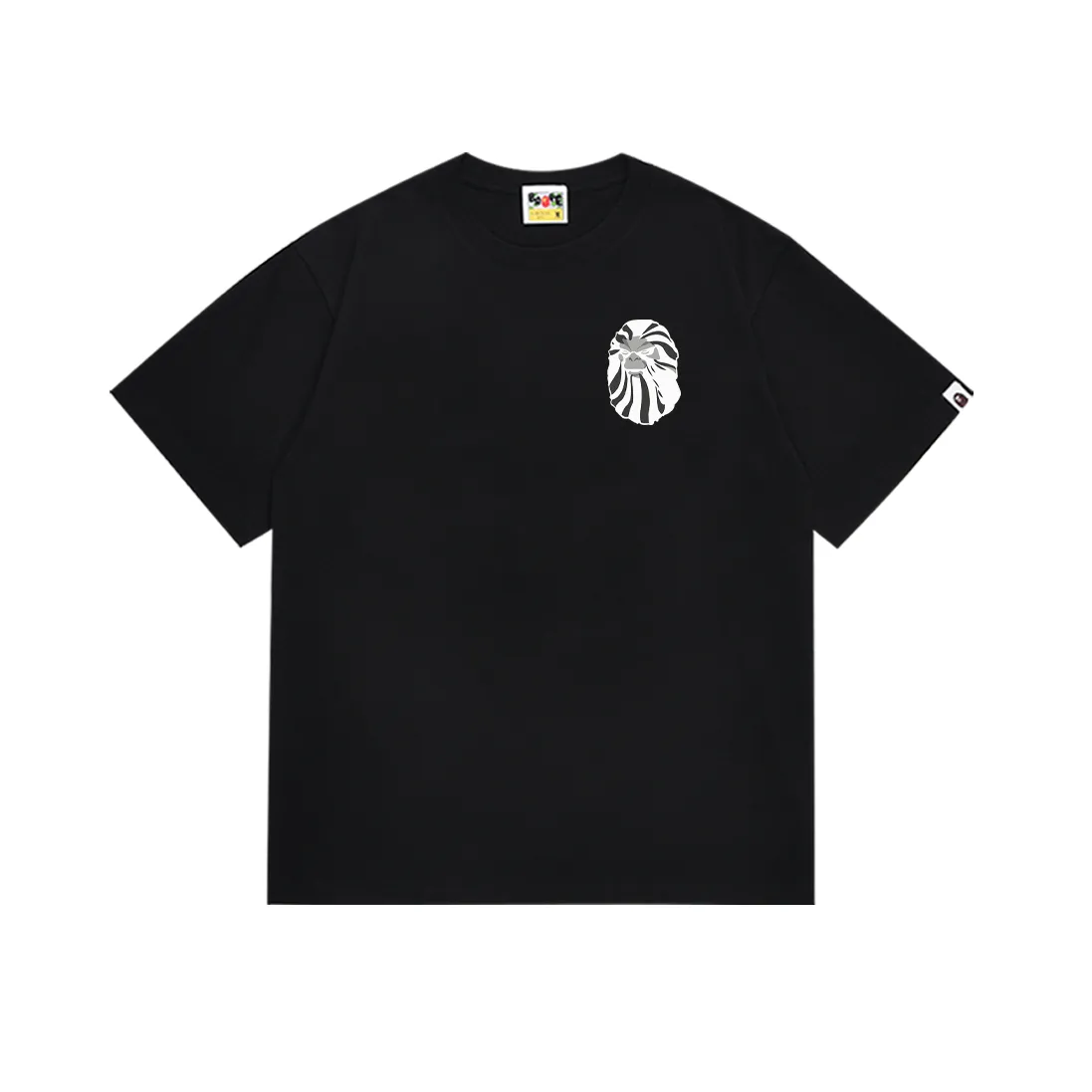 - Brand & Design: A BATHING APE (BAPE) short-sleeve T-shirt with the signature ape head and letter logo prints, a cornerstone of urban street fashion.