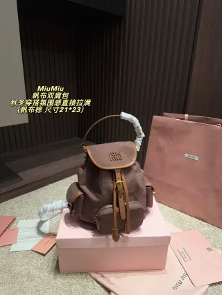 A lightweight, retro-chic canvas backpack with brown leather trim and a bold logo. It’s spacious, versatile (handheld, shoulder, backpack), and perfect for commutes/short trips—blends preppy & vintage vibes for autumn/winter styling.