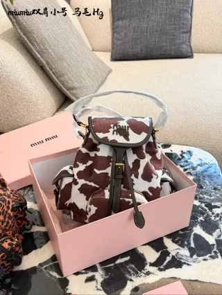 A retro-chic cow-print faux fur backpack (brown & white) with a soft, cozy texture—perfect for cool seasons! Mini-sized, lightweight, and versatile for commutes/short trips, it adds playful personality to any outfit.