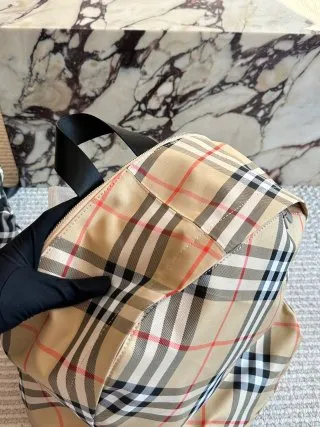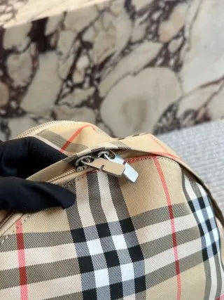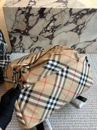 Design & Details: Crafted with a iconic checkered pattern (matching lining) and branded equestrian motifs. It includes a B-shaped zipper, 1 outer pocket (for laptops/files), 2 zippered top pockets, and 2 side slip pockets for practicality.