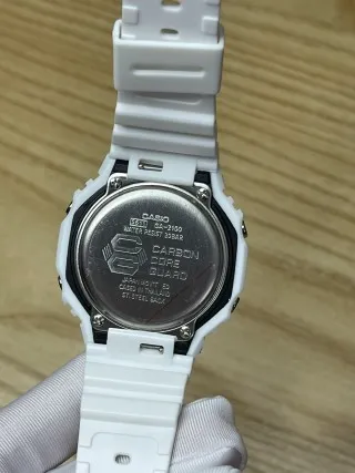 Sturdy, lightweight build: The robust white case (marked with functional details) is engineered for daily resilience; the flexible strap includes multiple adjustment holes for a customized, comfortable fit.